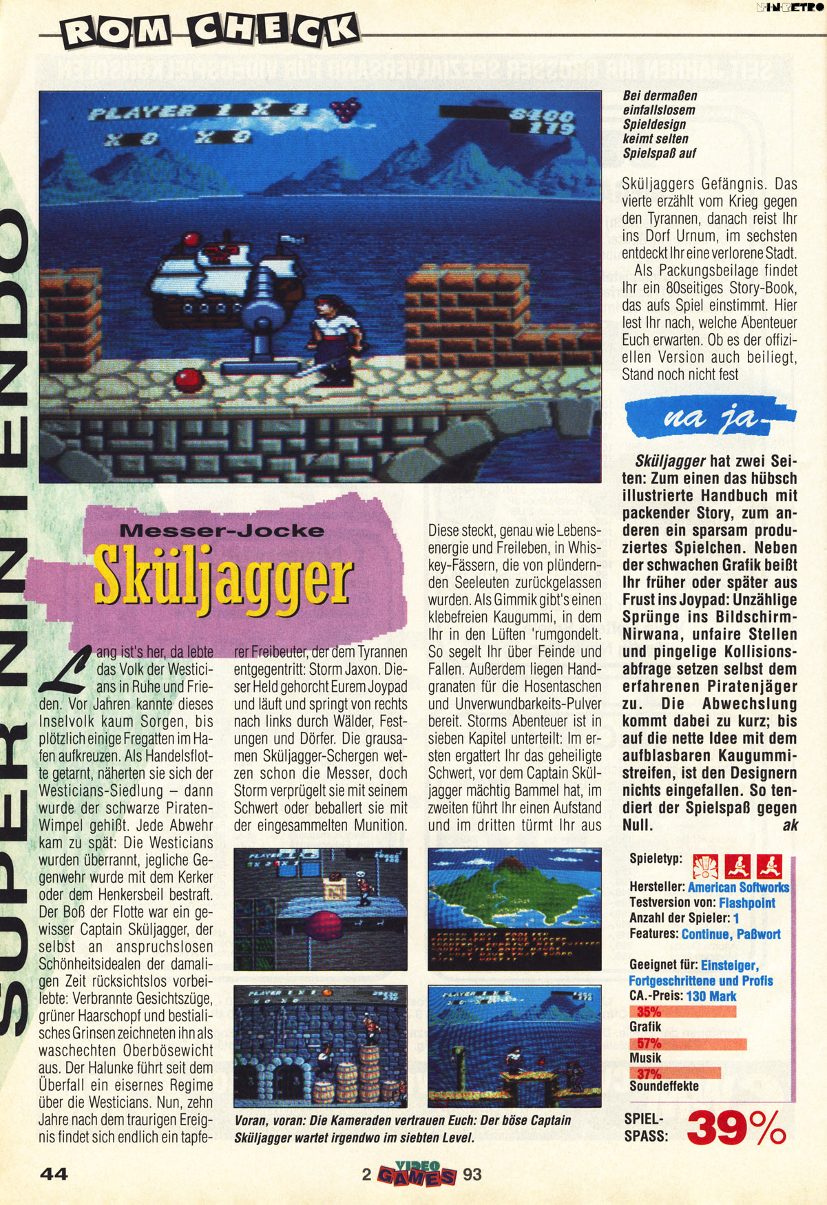 There's never been a game like this before. Sküljagger combines a high-powered action game with a clue-filled story to create the biggest 16-bit experience ever!
