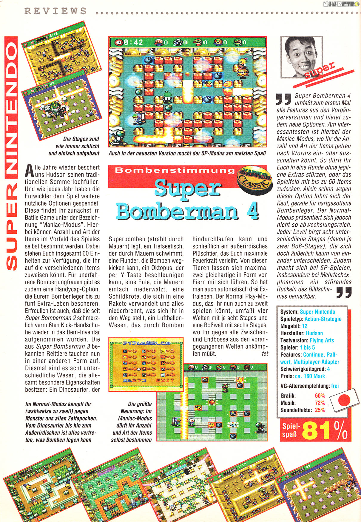 Das wohl beste Bomberman im Multiplayer-Bereich. Leider nie bei uns erschienen. Ich habe es via NTSC-Aufsatz gespielt und der Titel hier holt wirklich alles aus dem SNES raus.