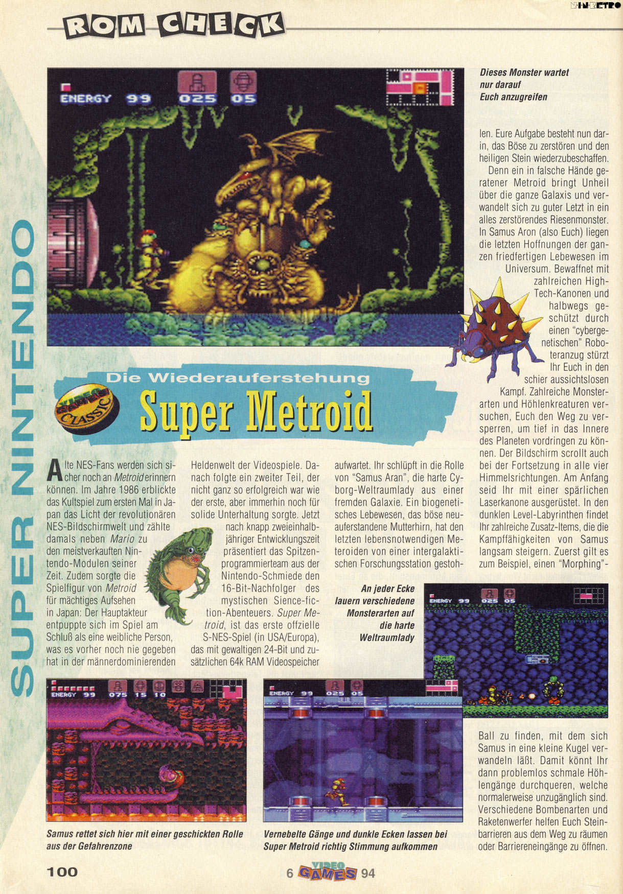 Super Metroid ist wahrlich super und für mich bis heute das beste Metroid! Vor 3-4 spielte ich es zuletzt wieder durch und es hat mich so begeistert wie damals. Das will was heißen. Die absolut geniale Atmosphäre wurde ja bereits oft erwähnt.