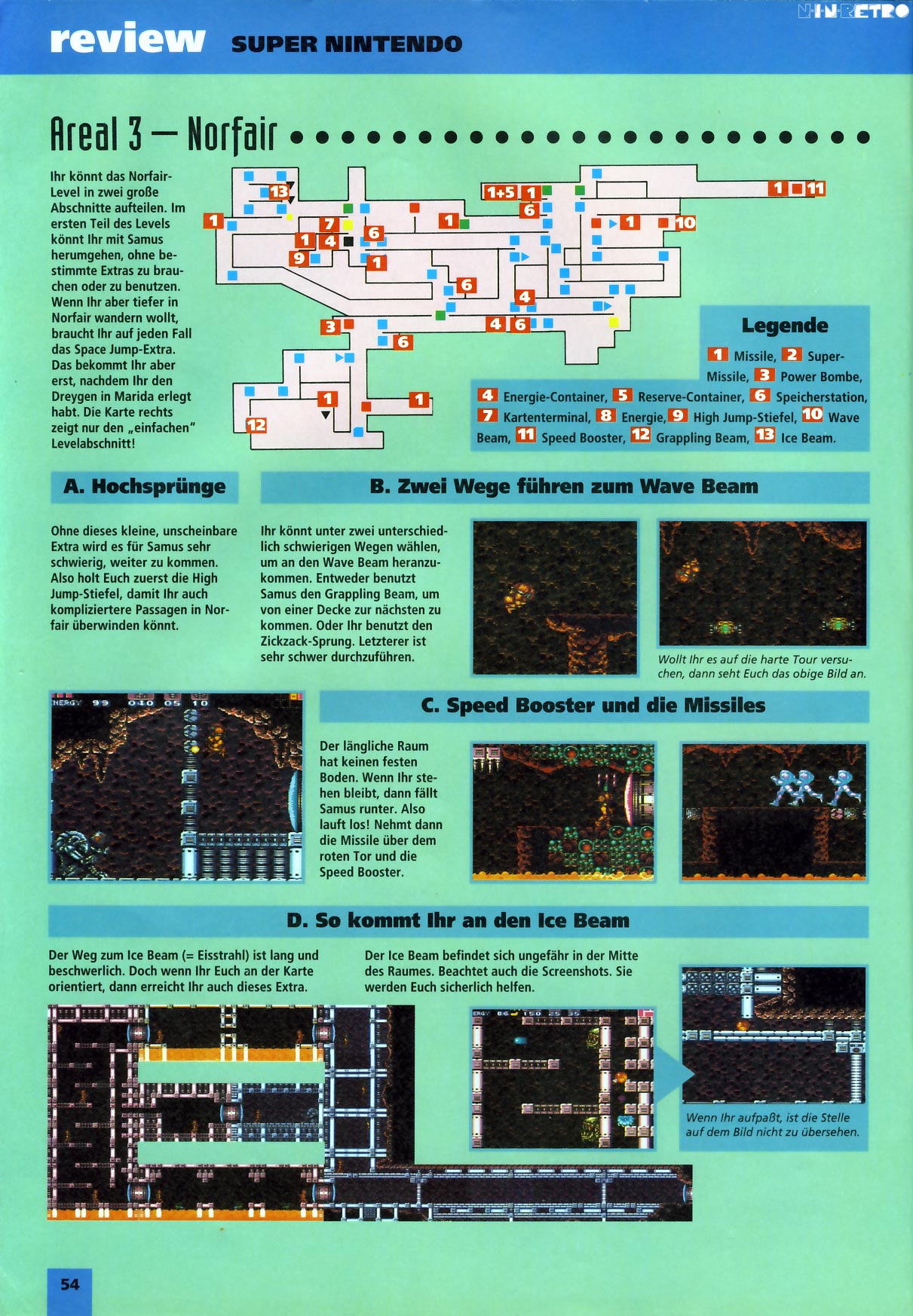Mit dabei ist ein 76-Seiten-Spieleberater, voll mit Karten, Gegenständen, Waffen, Taktiken und vielem mehr. Er führt Dich durch die gigantischen, unterirdischen Gebiete von Zebes und hilft Dir bei der Suche nach dem letzten lebenden Metroiden.