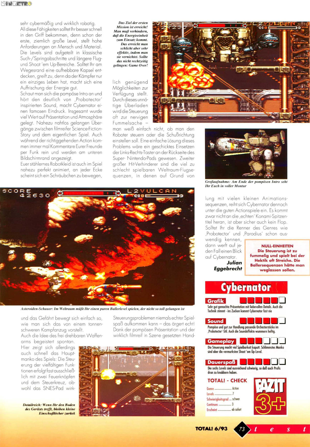Mir hat Cybernator eigentlich ganz gut gefallen. Mit der Steuerung kam ich auch nicht so ganz klar, aber ich habe es auch nicht allzu lang gespielt.