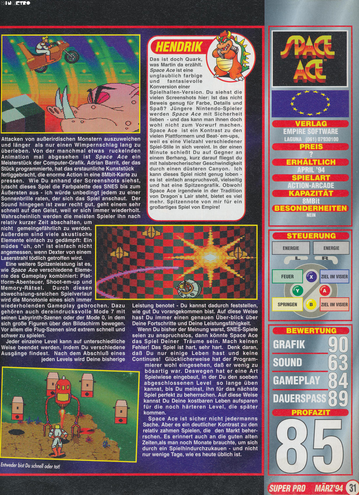 Kennt noch jemand das Käseblatt Super Pro? Die haben Space Ace damals mit sagenhaften 85% bewertet.