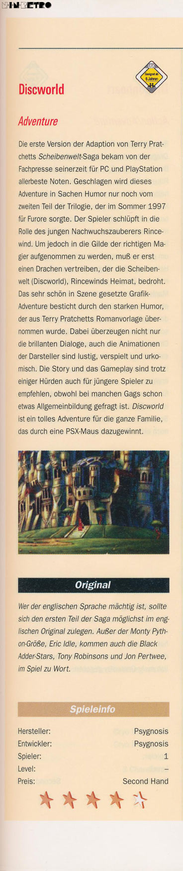 Eines meiner Lieblings Point 'n' Click Adventures. Rincewind ist ein toller Charakter, der Humor der Macher erstklassig und die Rätsel knifflig (grenzt manchmal an unfair). Zusammen mit der tollen englischen Synchro ein geniales Spiel und jedem Genrefan nahezulegen.