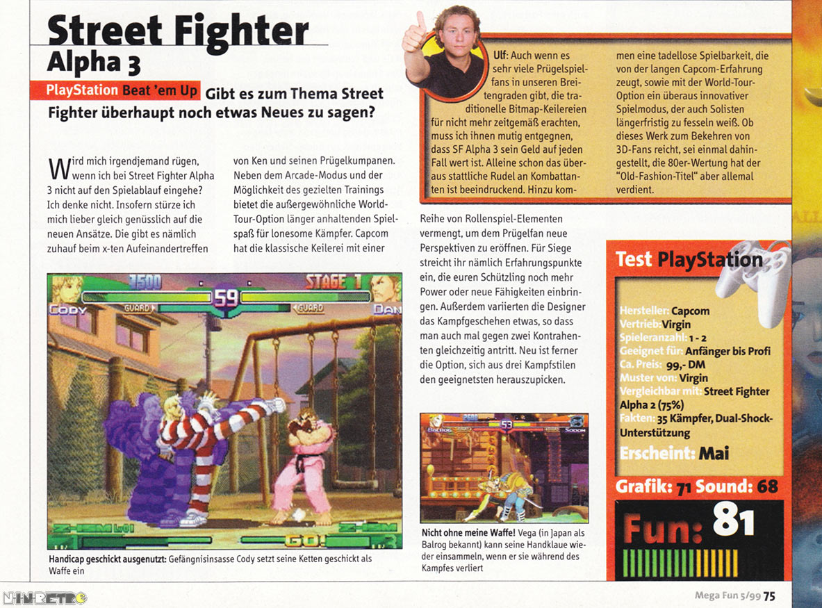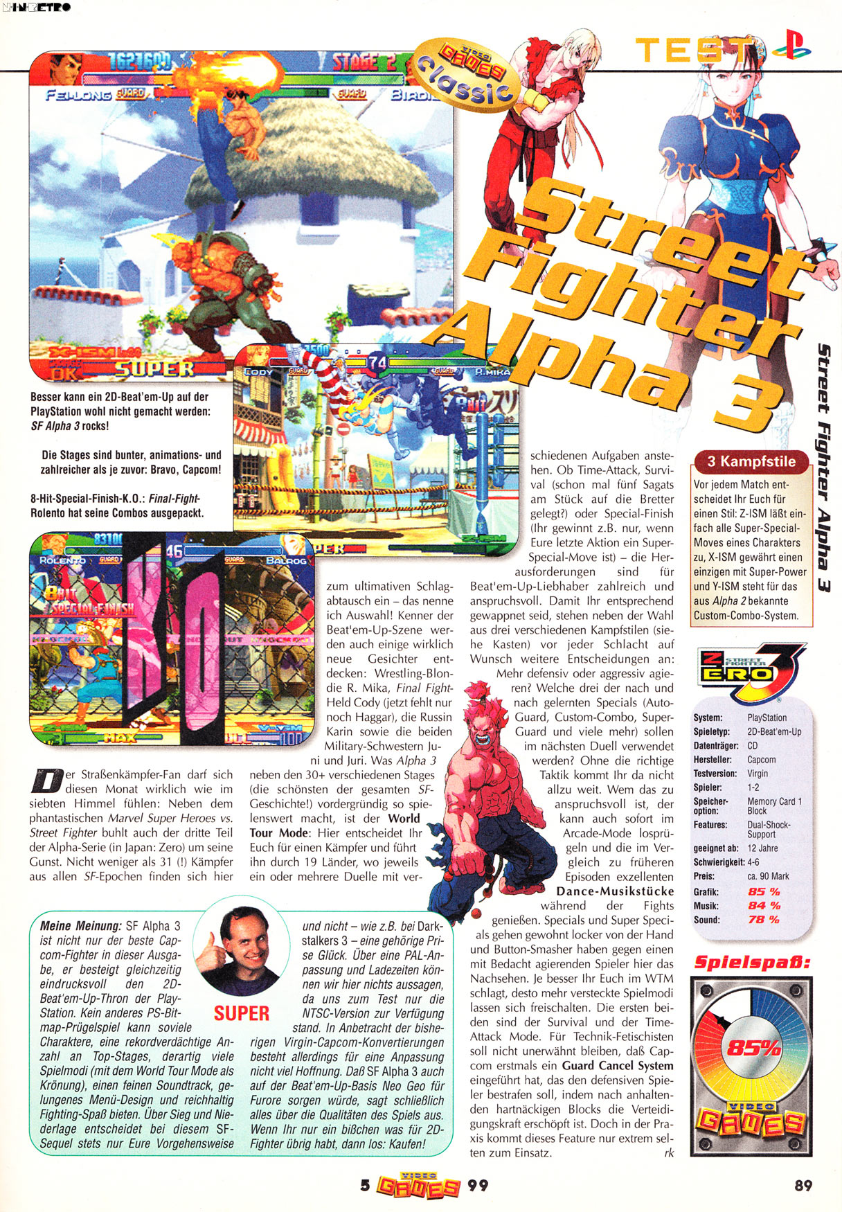 Nach SF Alpha 2 war mir Teil 3 einfach zu steril und kam mit kaum einer Idee daher (wie früher ja auch schon die Nachfolger bei den SF 2-Teilen). Was ich total positiv finde ist die Kampfgeschwindigkeit und Präzision. Da muß man schon sagen, daß es gut programmiert ist. Ich glaube sogar das es eines der schnellsten SF überhaupt ist, kann mich aber auch täuschen. Teil 3 würde ich mir nur zulegen, wenn man kein vorherigen Alpha-Teil besitzt.