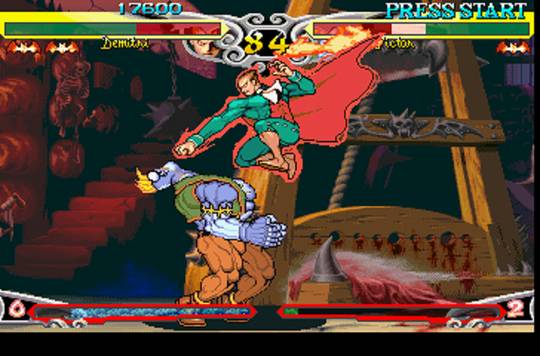 Darkstalkers ist nichts anderes als Street Fighter mit anderem Setting. Die Engine ist die gleiche wie bei SF2. Warum ist also die Bewertung der Magazine so niedrig? Mir gefällt Teil 3 sehr gut. Die Musik ist nicht so passend wie beim Original SF2, aber ansonsten kann ich nicht meckern. Die Stages sind passend zu den Figuren gut gezeichnet (auch wenn sie nicht so toll animiert sind), die Figuren sind recht kreativ umgesetzt und auch zahlreich vorhanden, die Movelist ist in Ordnung und das Spiel ist SF-mäßig flink und hat eine gute Kollisionsabfrage. Und vor allem Morrigan die Geisterkönigin *lechtz*. Unterm Strich finde ich den Street Fighter-Klon aus eigenem Hause gelungen und wird einen 2D-Fighting-Fan auch nicht enttäuschen.