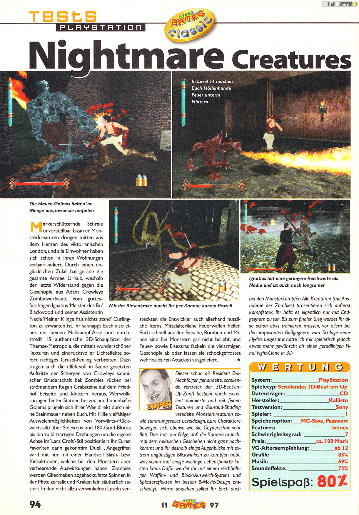 "A fantastic, full-on splatter flick... Buy Nightmare Creatures and you won't regret it!" - 90% PLAY magaine.