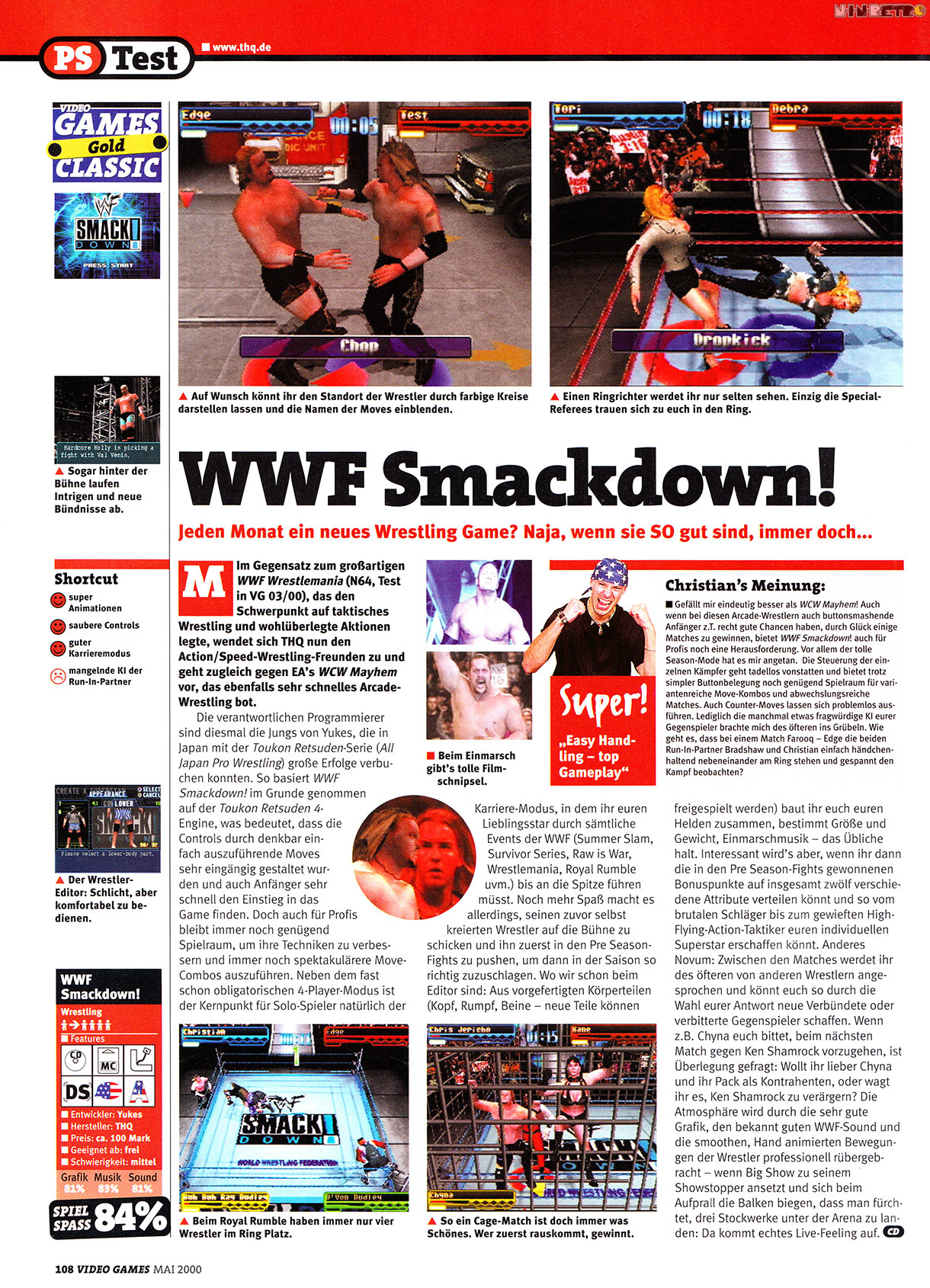 ein geniales Spiel! Ich habe es anno dazumal mit nem Kumpel stundenlang gezockt, bis zum Morgengrauen!!! Gerade der Multiplayer Story Mode, und das man sich dort mit selbst erstellten wrestlern hocharbeiten musste war ziemlich genial.