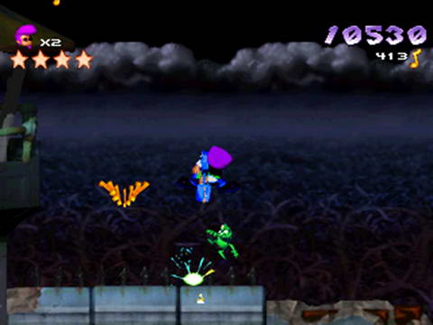 360° rotation jumps and hover jumps in a 3-D scrolling environment.