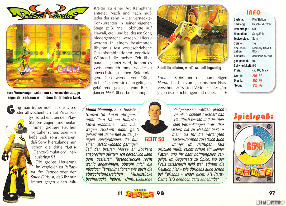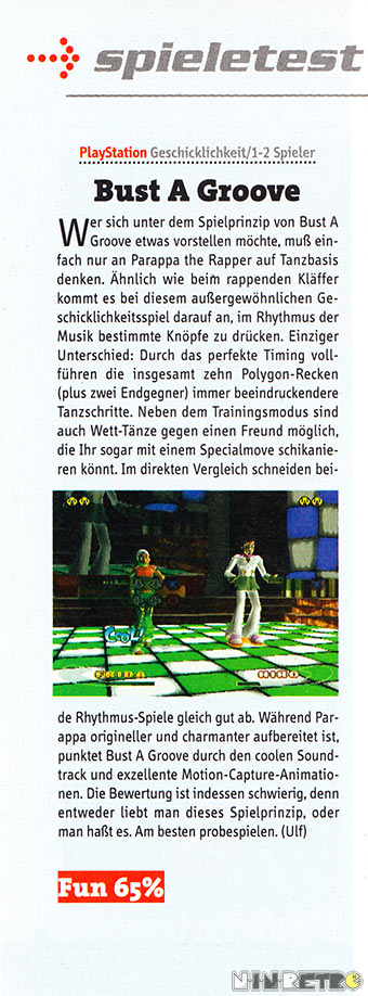 Achja, in Japan hieß das Spiel übrigens "Bust a Move: Dance & Rhythm Action". Das was in den USA und zum Teil auch bei uns unter Bust a Move bekannt ist, heißt in Japan Puzzle Bobble.