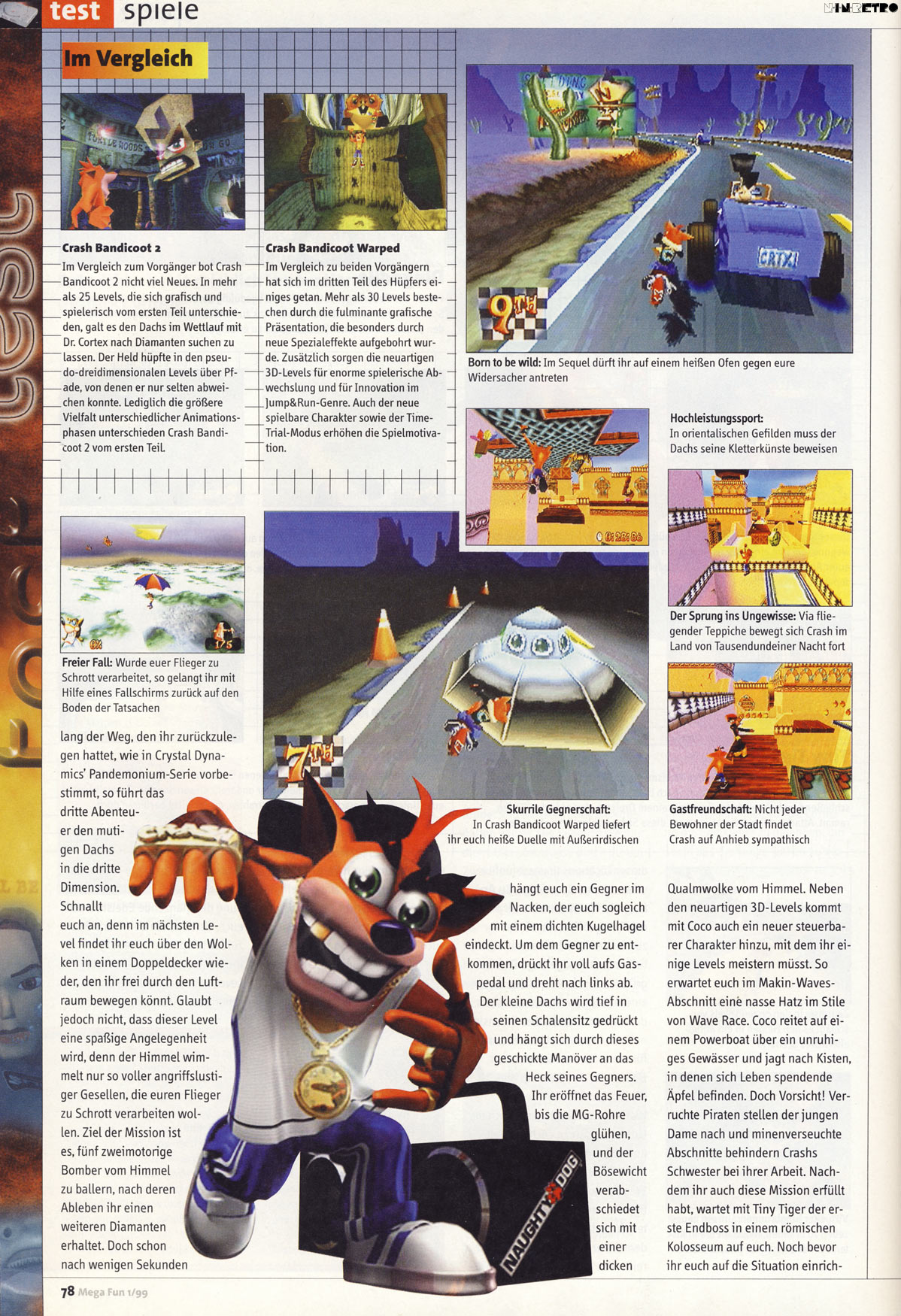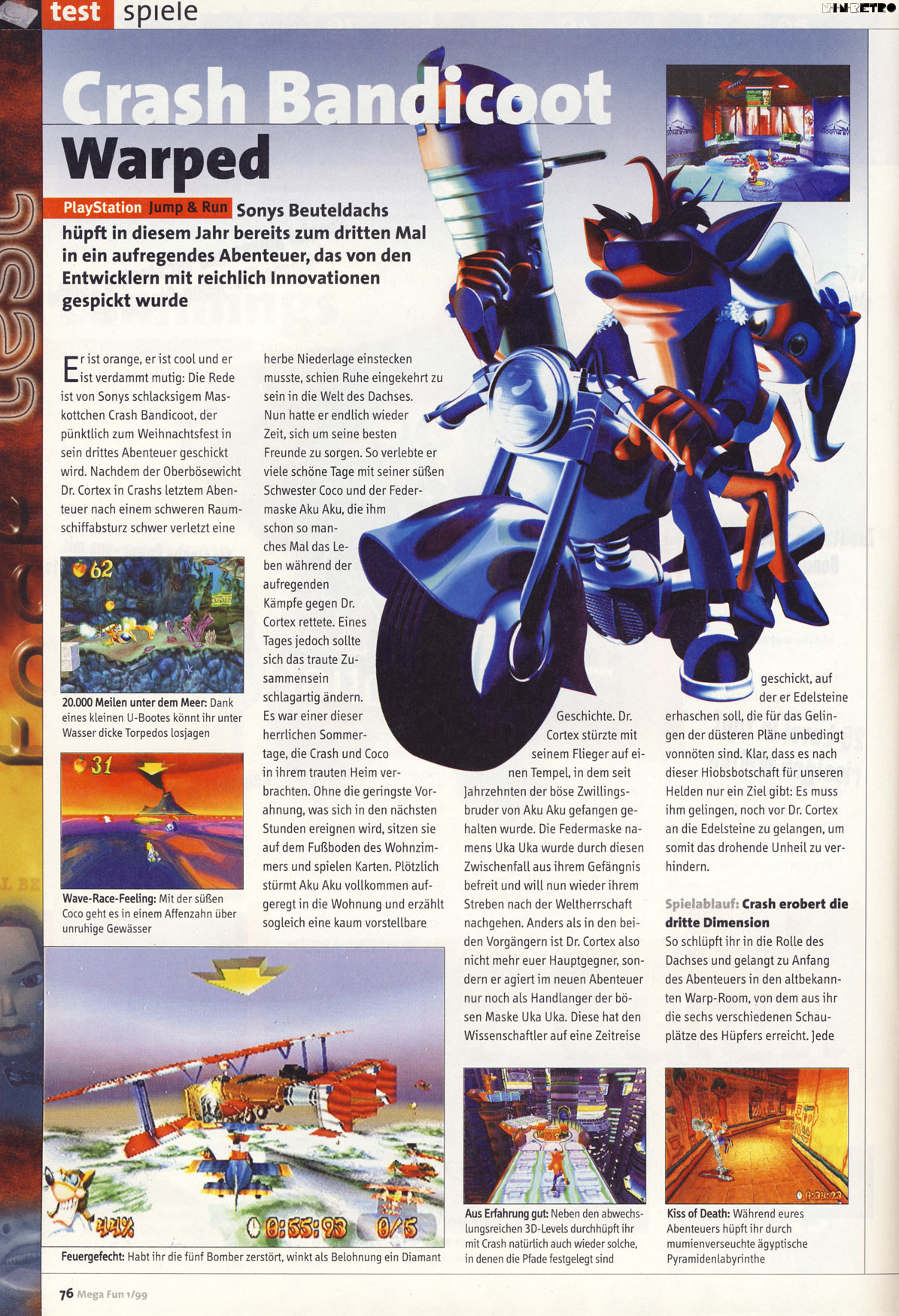 "(Crash WARPED) isn't just a sequel, it's a whole new game. Oh yeah... it's the must have Playstation game of the year!" - PS Extreme