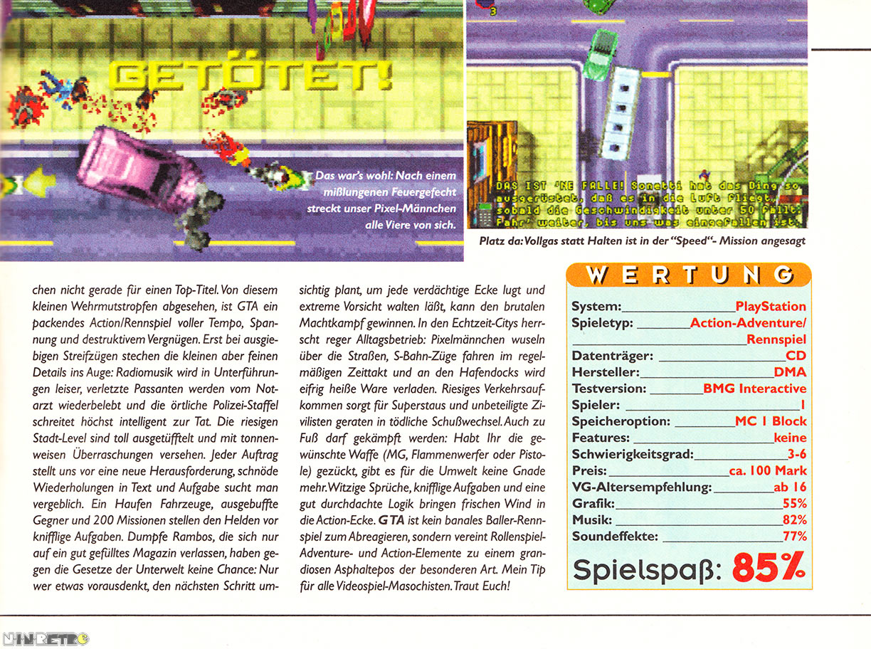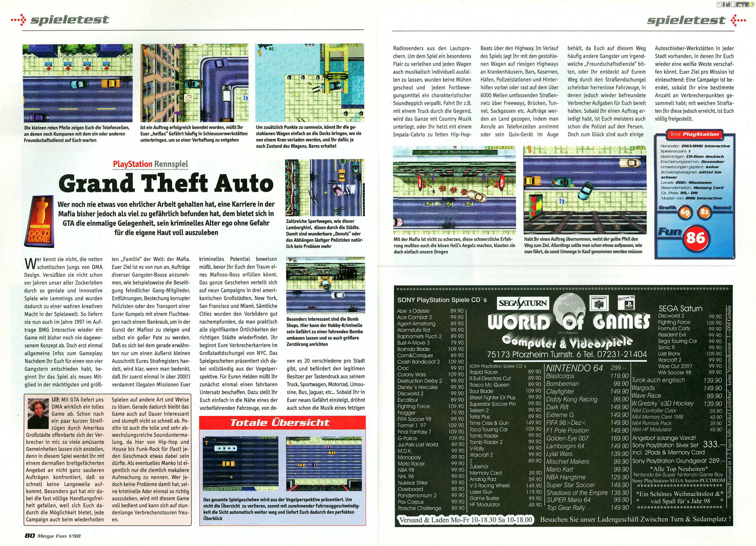 GTA war mir noch unbekannt, bis es eine Demo gabt von GTA 2 (nach 30 min Spielzeit bleibt die Bild stehen, was da vordem Demo auch erwähnt wurde)