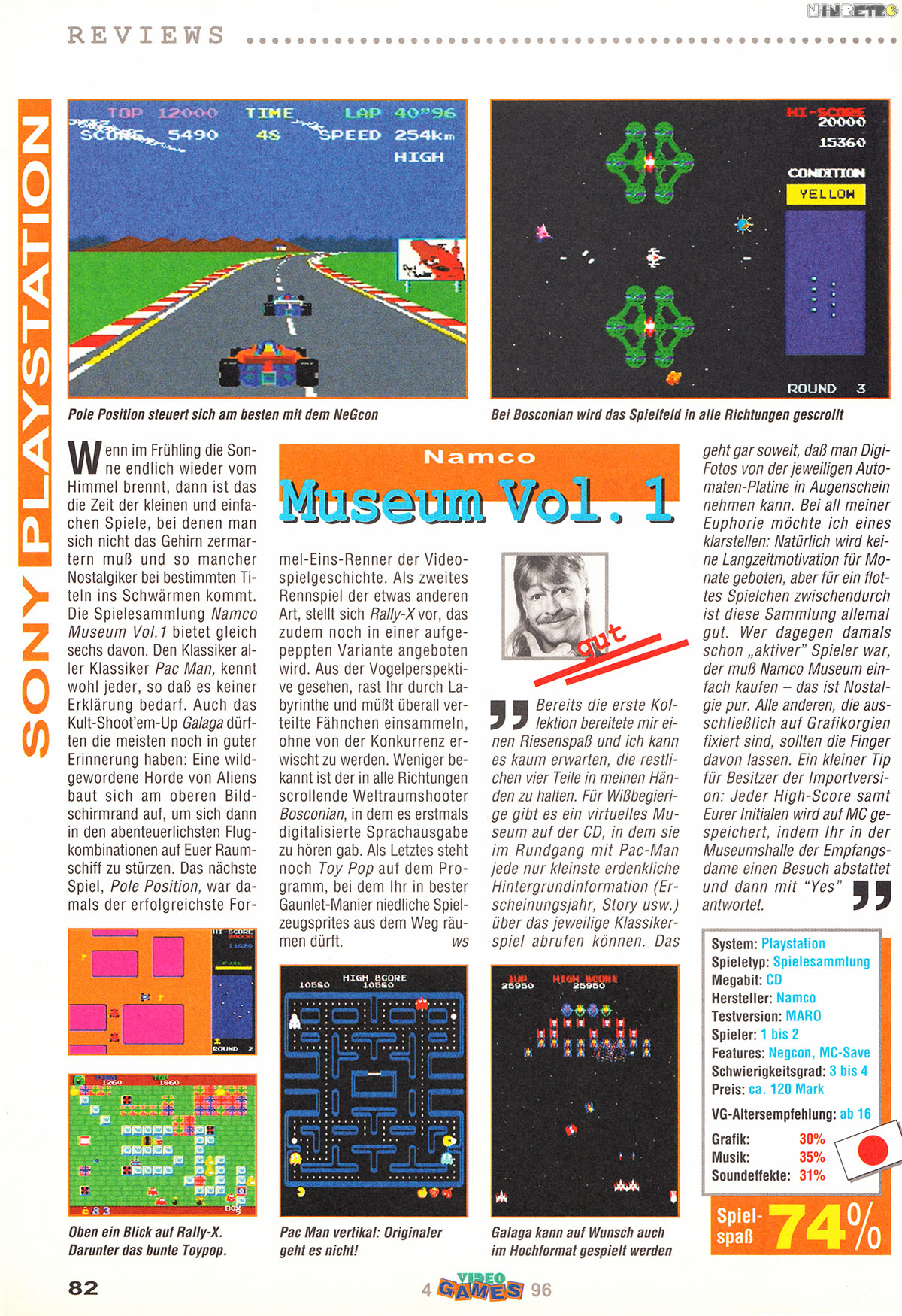 Keep those quarters in your pants. With Namco Museum Vol. 1, you can set up your own arcade with classics like Pac-Man, Galaga, Pole Position, Bosconian, Rally-X, New Rally-X and Toy Pop. Genuine arcade translations with genuine arcade options.