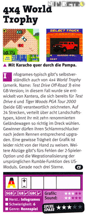 Insgesamt auch wieder schön oldschool mit echten Autos wie Hummer, Dodge, Jeep etc und einigem zum Freispielen. Schade aber, das die Ansicht jetzt komplett von oben ist, anstatt das vorherige leichte Perspektive zu übernehmen. Das hätte gerade bei diesen Strecken mit Höhenunterschieden was hergemacht (sofern technisch möglich).
