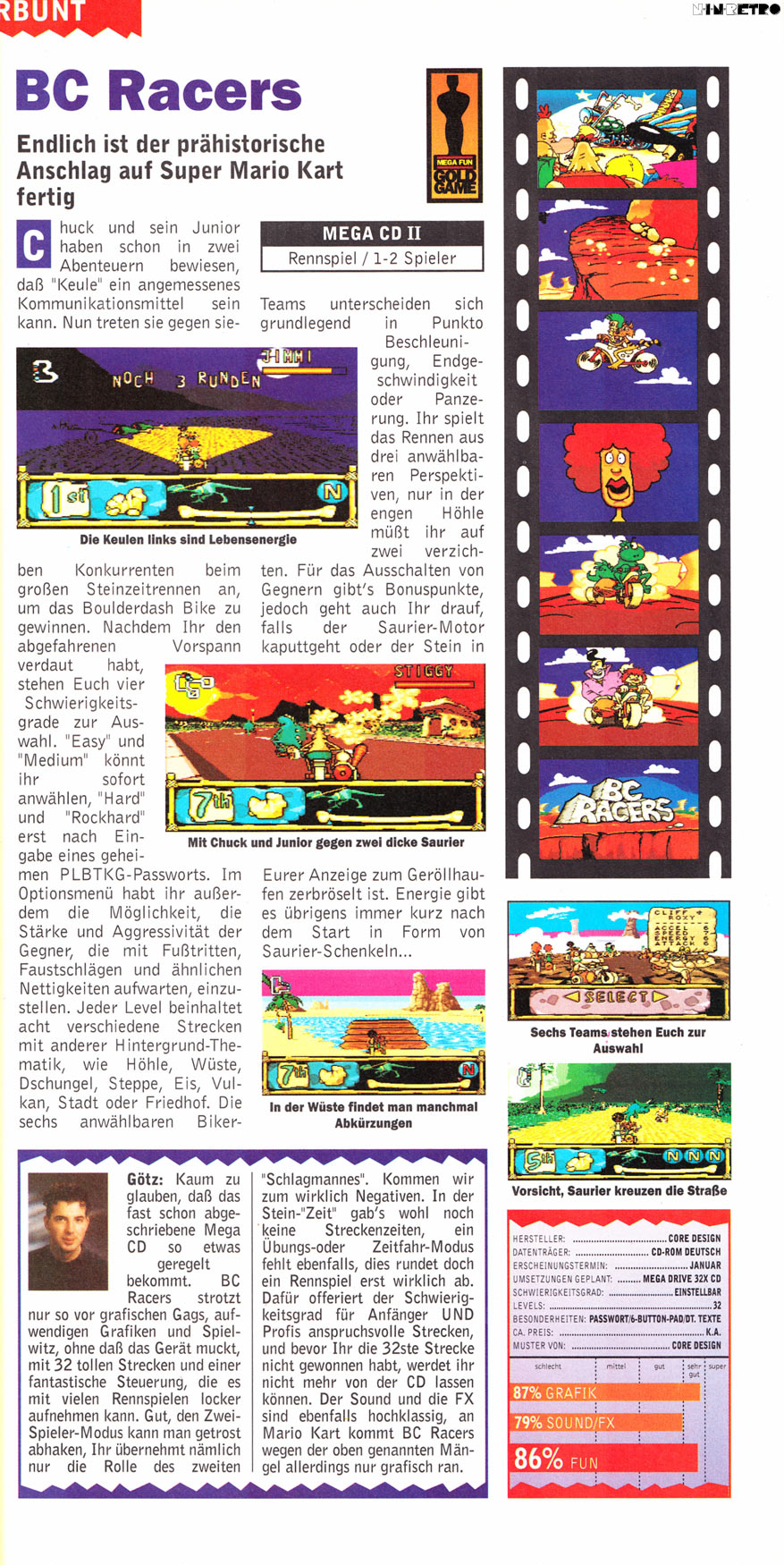 Gewöhnungsbedürftige Steuerung, aber nicht viel schlechter als Mario Kart! Auf "Rockhard" macht's am meisten Spaß.