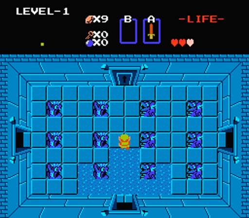 Where the only sound you'll hear is your own heart pounding as you race through forests, lakes, mountains and dungeonous mazes in an attempt to restore peace to the land of Hyrule. Along the way you'll be challenged by Tektites, Wizzrobes and an endless arry of ruthless creatures who'll stop at nothing to prevent you from finding the lost fragments of the Triforce of Wisdom. But don't despair. With a little luck and a lot of courage, you'll conquer your adversaries, unite the Triforce fragments and unravel the mystery of THE LEGEND OF ZELDA!