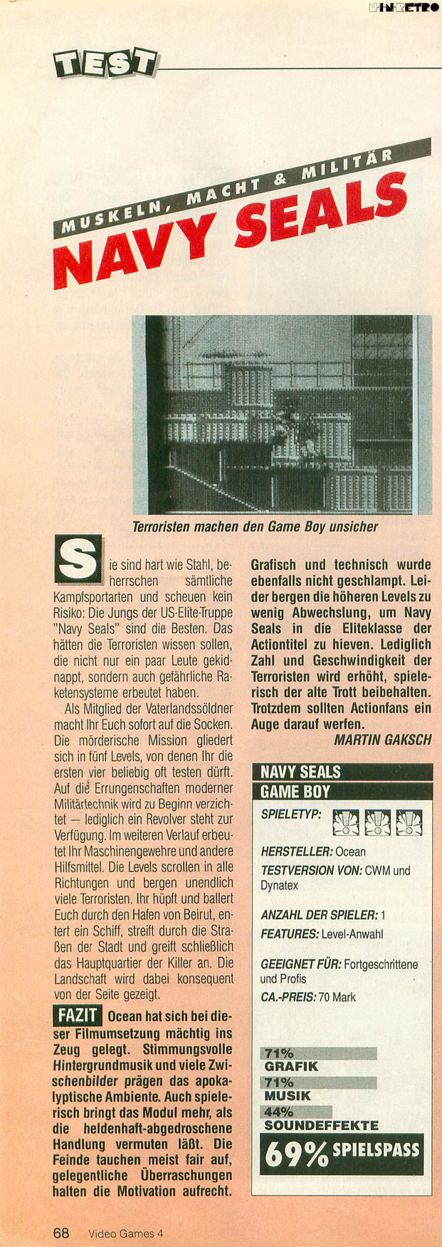 Die Spielfigur kann nur laufend oder stehend nach links und rechts schießen, nicht in andere Richtungen und nicht während man springt. Bei den anstürmenden Gegnerhorden verliert man so sehr schnell seine Leben, wenn man sich nicht in Millimeterarbeit vorwagt. Im ganzen Spiel gibt es nur einen Gegnertyp, wenn auch in Variationen, wie z.B. duckend und schießend und keine Endgegner. Die Level sind stellenweise ziemlich unübersichtlich, haben aber positiverweise einige versteckte Stellen mit Extras. Netterweise kann man die ersten vier Stages zum trainieren anwählen. Nur für die Letzte, also Fünfte, muss man zuvor alle Anderen hintereinander durchgespielt haben. In allen Stages erklingt die gleiche Musik, die ist zwar ganz nett, nervt aber irgendwann. Die Titelmelodie rockt, da gebe ich dir recht.