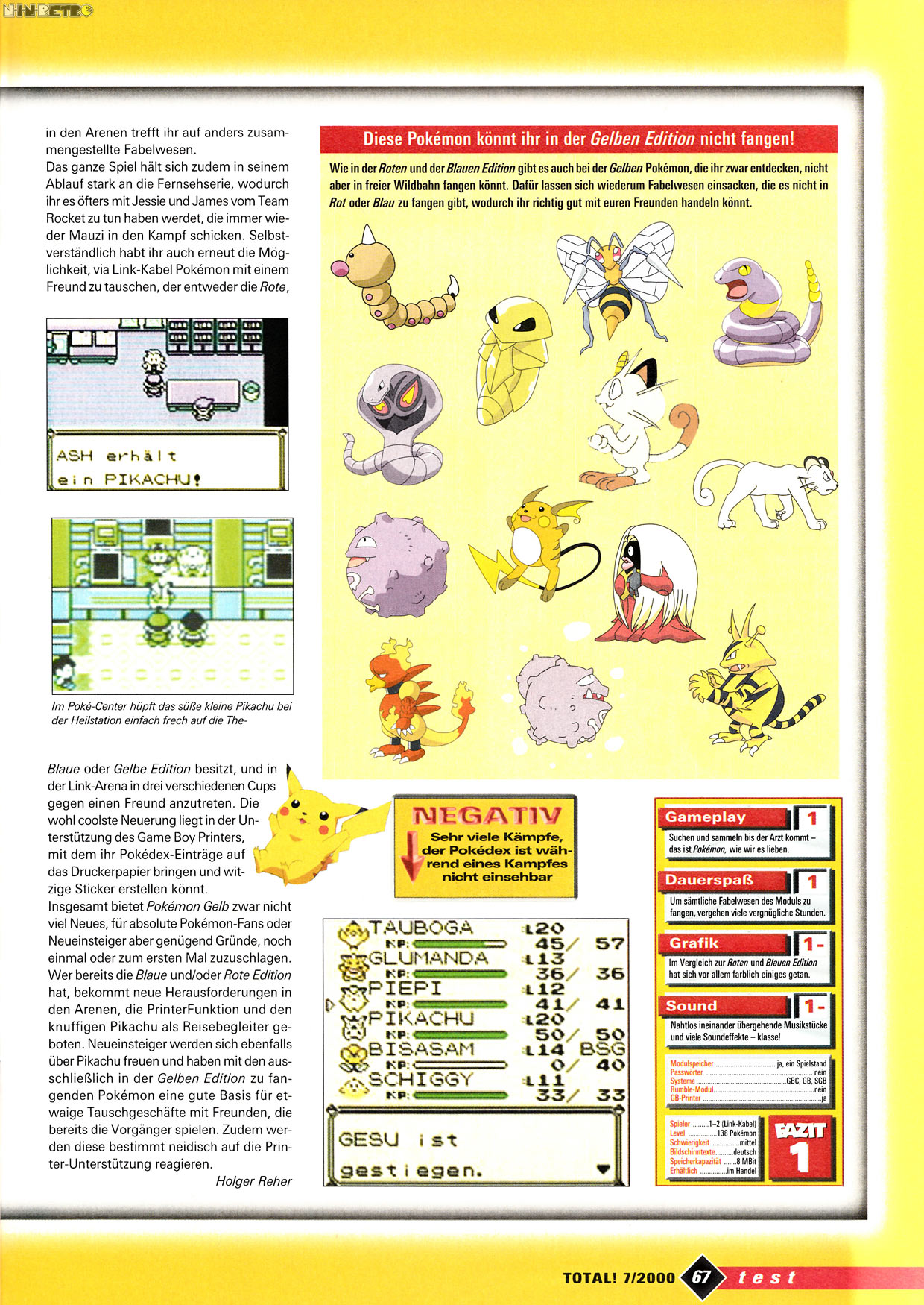 Die Gelbe Edition ist die einzige Pókemon-Version, die ich besitze. Es wurde mir damals von jemanden geschenkt, der seine GBC-Sammlung nicht mehr benötigte. Ich muss allerdings gestehen, dass ich es noch nie gespielt habe. Muss ich irgendwann mal nachholen (was ich eigentlich schon seit Jahren vorhabe).