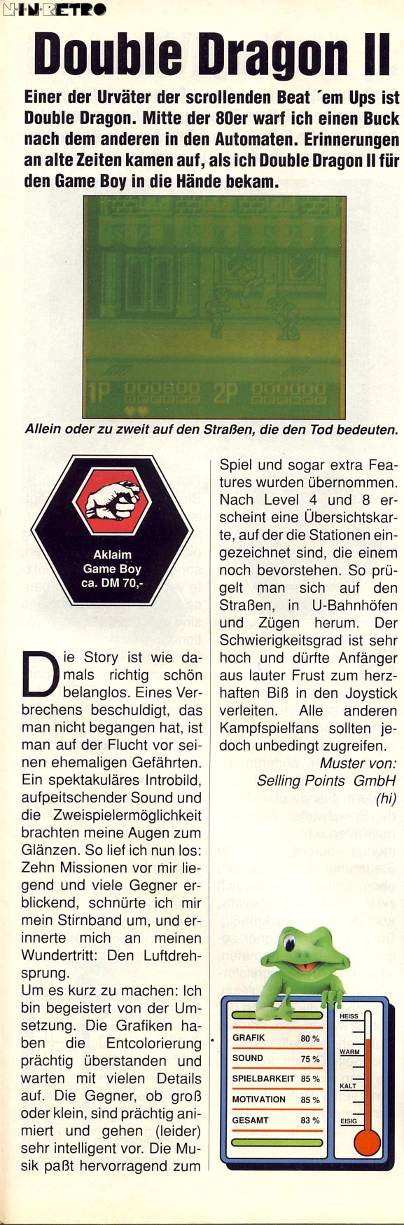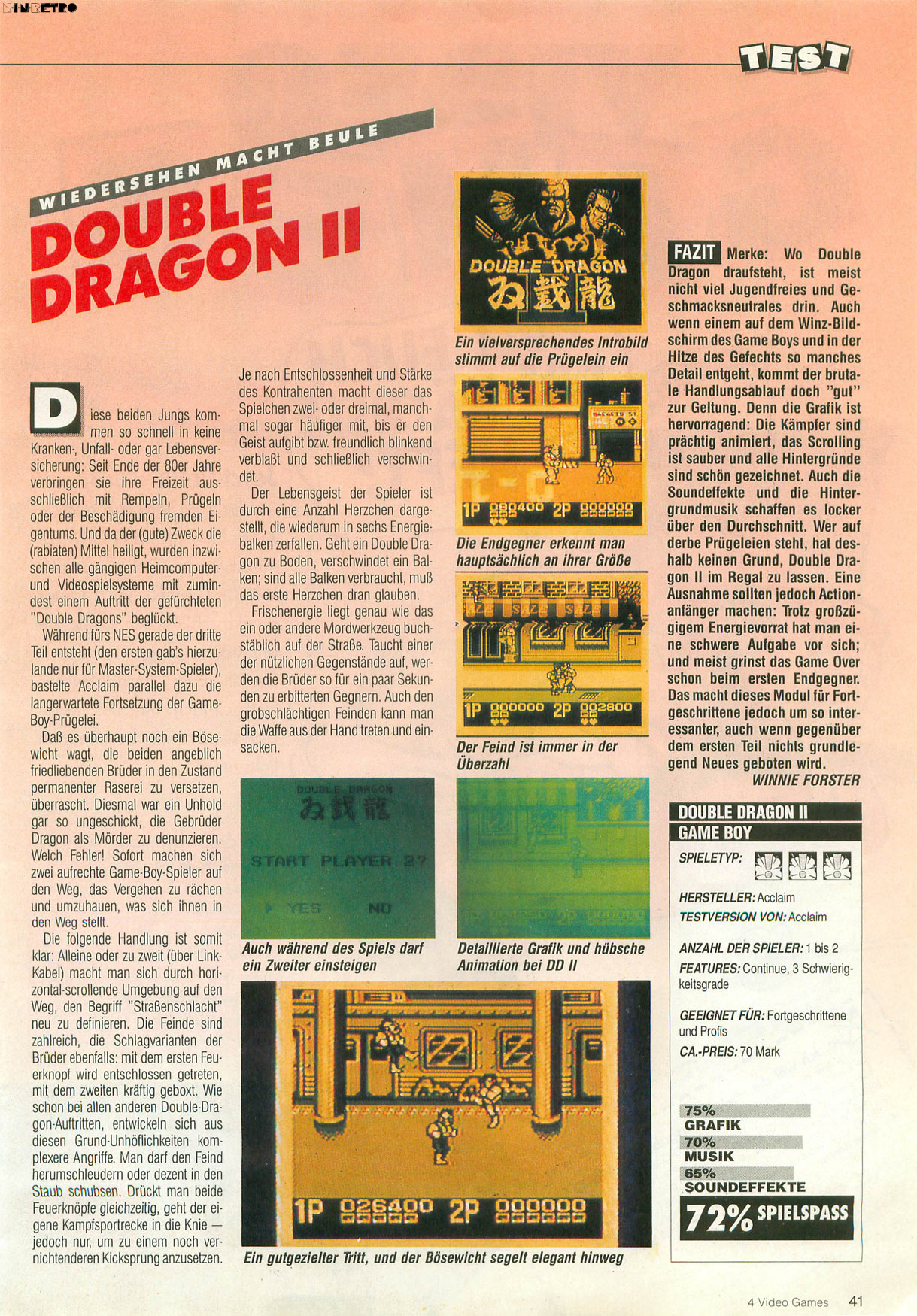 Habe nur ein Double Dragon mal für den GB gespielt und ich glaube, es war dieser Teil. Ein 70% Spiel in meinen Augen, genau wie Winnie Forster es bewertet hat. Hatte einen recht knackigen Schwierigkeitsgrad und man konnte für GB Verhältnisse ein par coole Moves machen, das weiß ich noch.