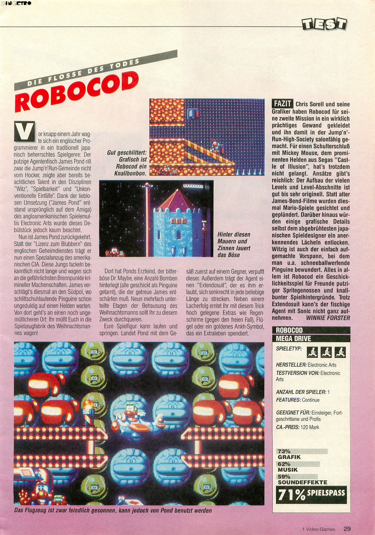 Ist eigentlich mal jemanden aufgefallen, dass sämtliche Hintergründe bei James Pond 2+3 schwarz sind?! Da scheint ewige Nacht zu sein. Spielerisch wissen die Spiele aber auch heute noch zu gefallen.