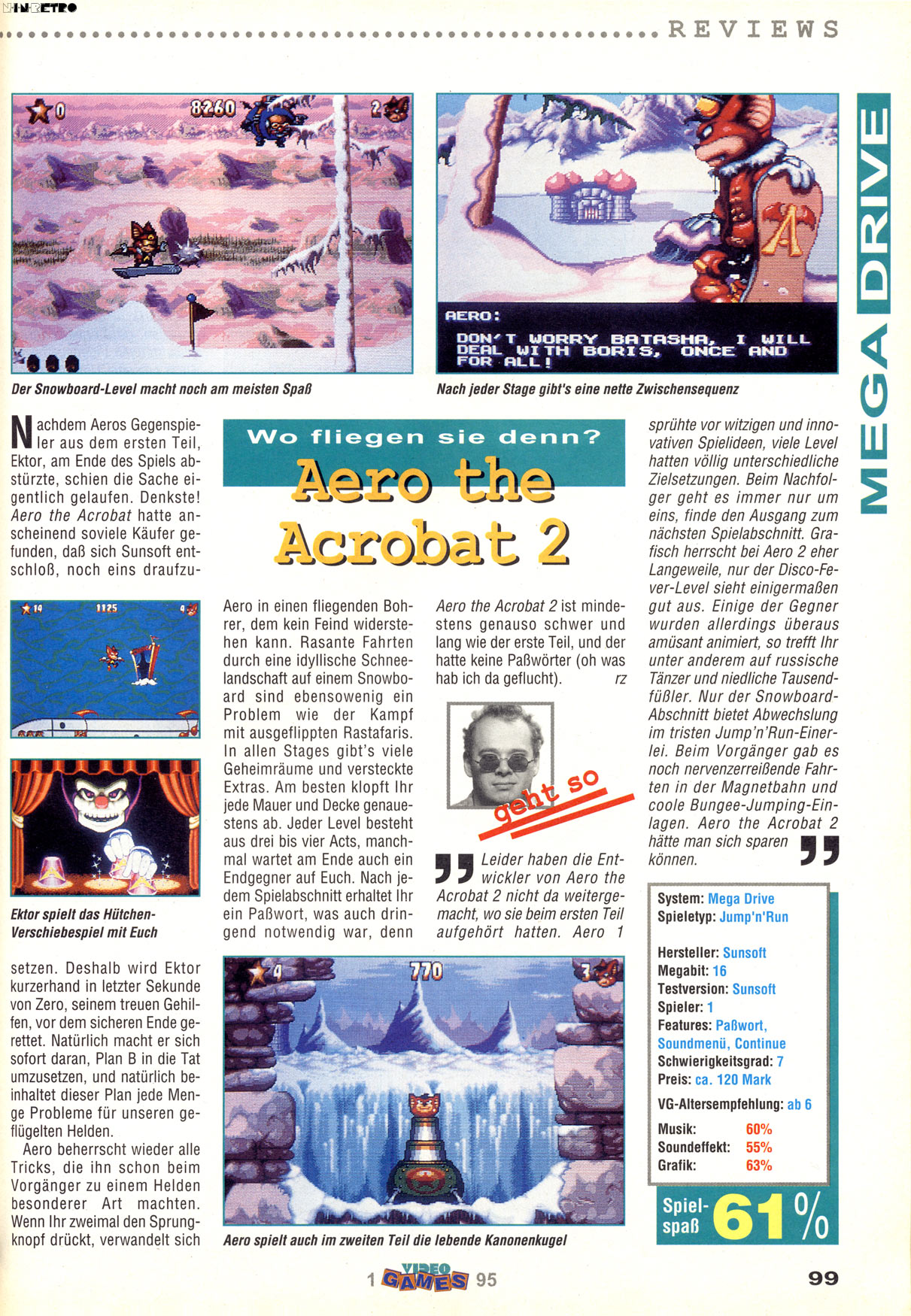 Der Extremakrobat der Lüfte, Aero the Acro-Bat, schwingt sich wieder einmal ins Rampenlicht. Seine Aufgabe: Den bösartigen Großindustriellen Edgar Ektor zu stoppen! Aero ist voll in seinem Element und muß all seine aktrobatischen Fähigkeiten zur Vereitelung einer kriminellen Verschwörung einsetzen - doch was verbirgt sich eigentlich hinter "Plan B"? Begleiten Sie Aero in eine speziell für seine luftigen Abenteuer geschaffene Welt, in der er neue Freunde (und Feinde) gewinnt!