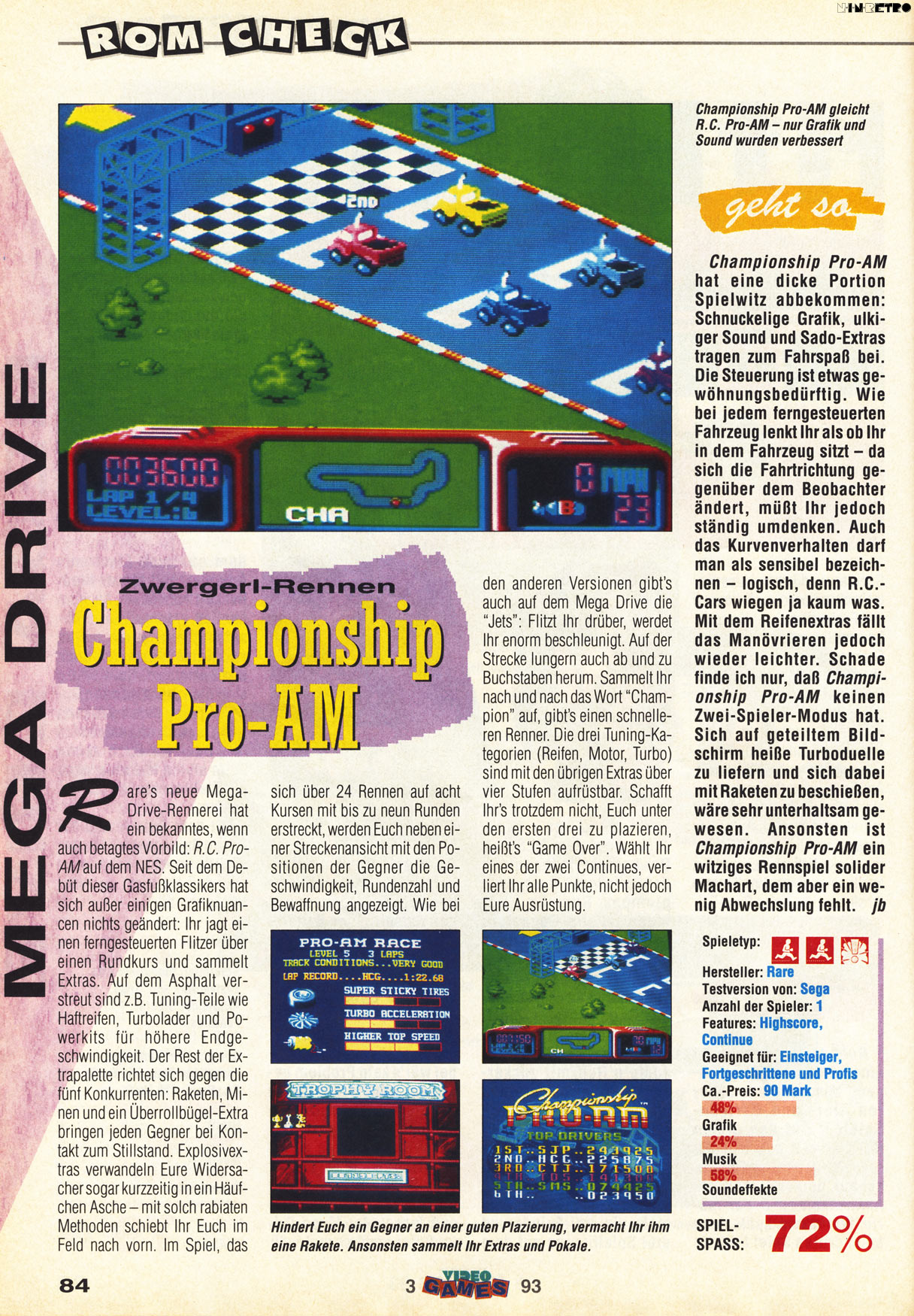 Championship Pro-Am auf dem MD könnte sowas von genial sein - so gut wie perfekt spielbar, optisch ansprechend, ordentlicher Sound, ABER: ultraschwer. Spätestens ab der achten oder neunten Runde ist Otto-Normalzocker hoffnungslos verloren. Passwörter oder Batterie gibts nicht und nach zwei, drei Fehlversuchen heissts von ganz vorne anfangen.