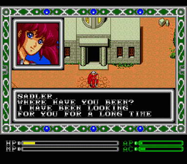 The travels of Sadler begin in a small desert town but take him across a world filled with magic, monsters and adventure! Join the nomadic warrior on his quest to rid his lands of an evil invasion. See the mystic realm unfold before your eyes in the map scrolling mode!