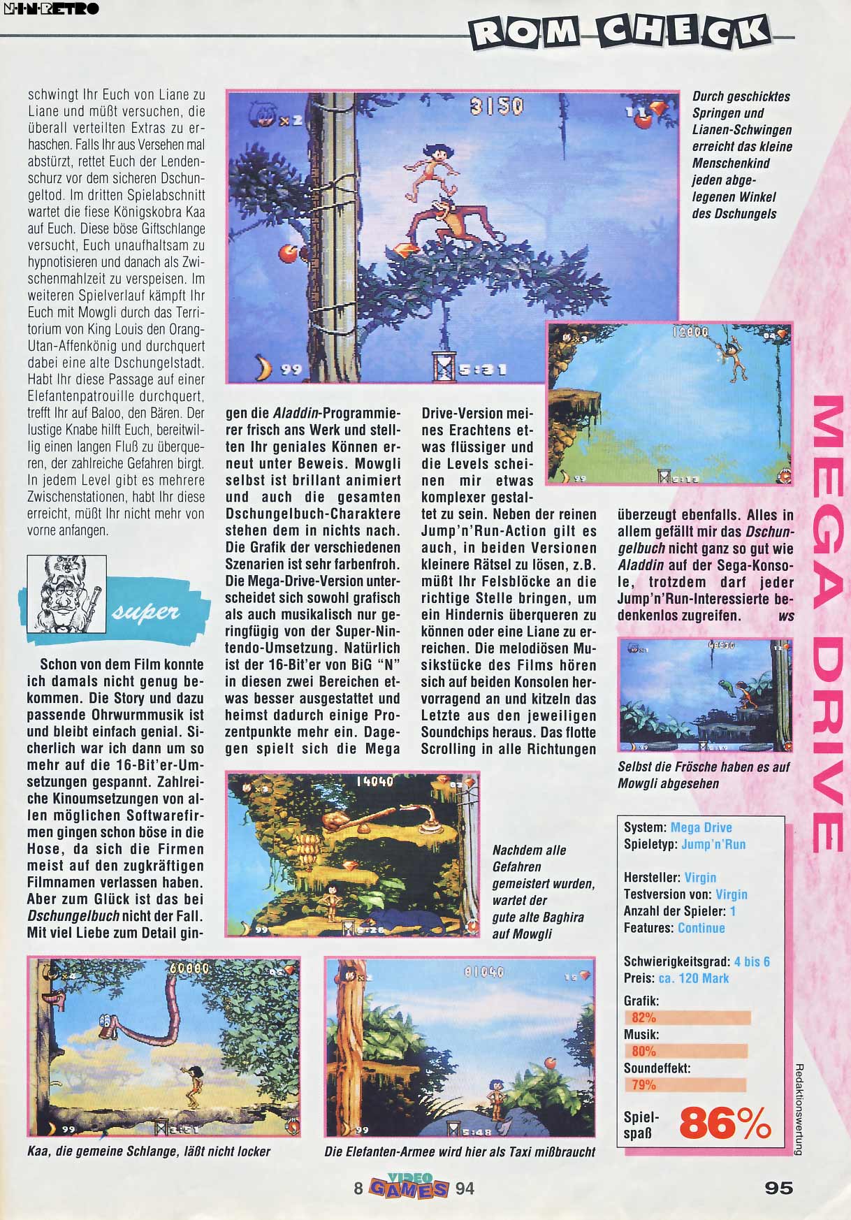 Seit 1995 nicht mehr gespielt, jetzt endlich geschafft (der Boss im 8. Level ist ganz schön fies - da hat's etwas länger gedauert ). Nicht, dass das Spiel so gut wäre wie "Aladdin", vom Leveldesign her ist es aber sehr abwechslungsreich und auch die Grafik hat mir gut gefallen. Von der Musik bin ich nicht so begeistert (die von "Aladdin" gefällt mir auch nicht), aber auf dem Mega Drive klingt's noch etwas besser als auf SNES. Insgesamt spielt sich die Sega-Version auch besser.