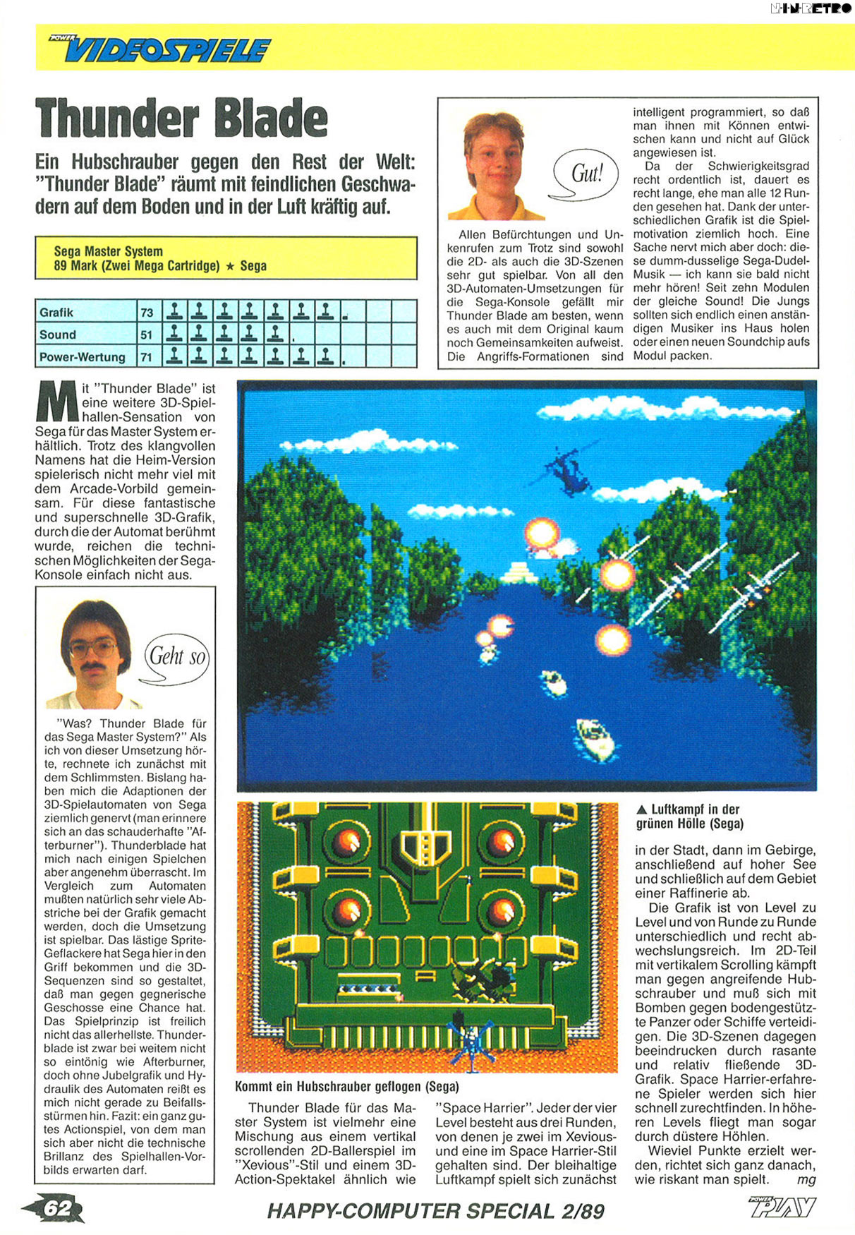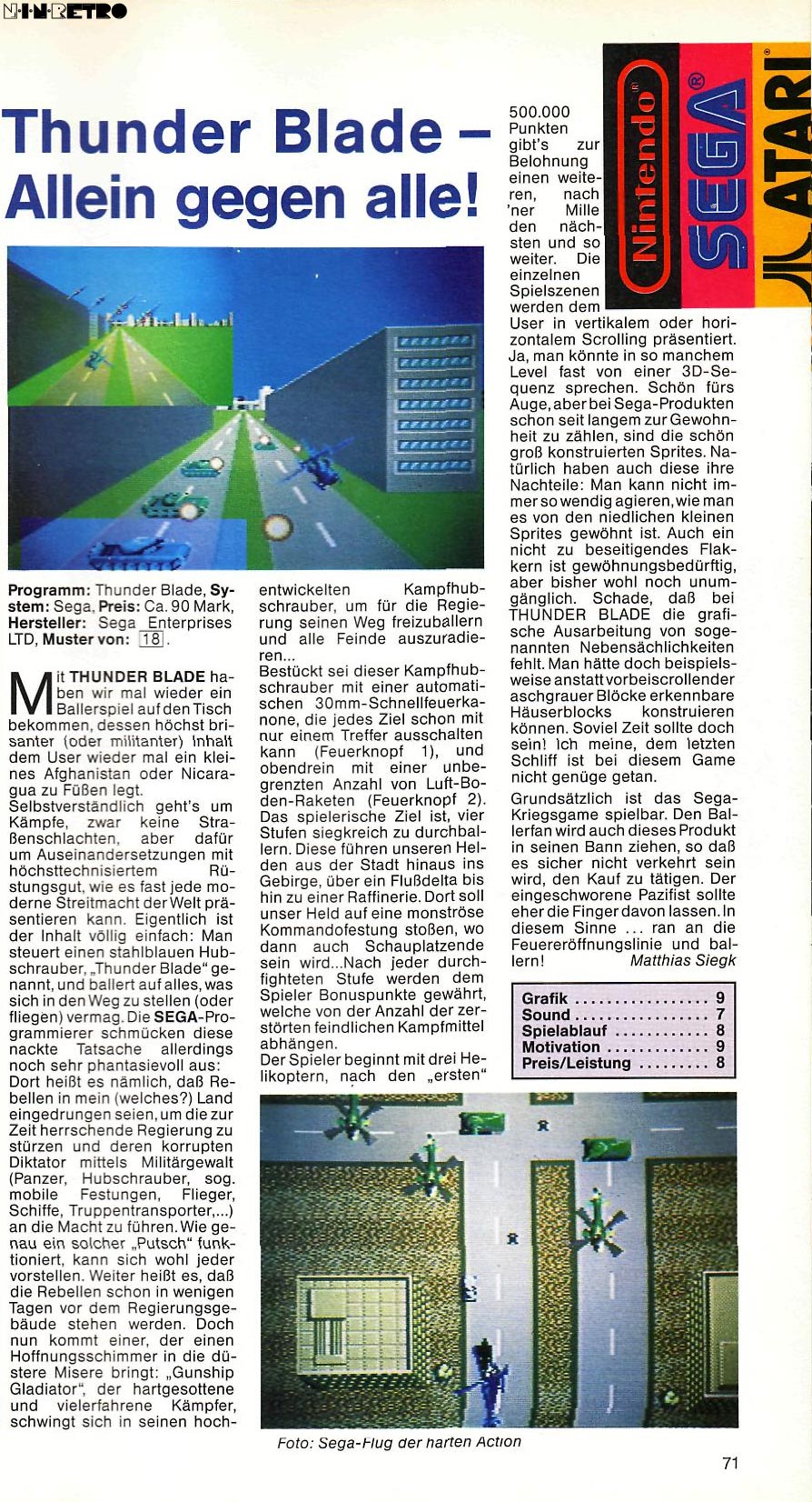 Mit Dauerfeuer (und Dank der geheimen Continue-Option) einigermaßen spielbar, trotzdem nicht so gut wie auf PC Engine und Mega Drive. Für Profis und Oldie-Fans ok, ansonsten gibt es bessere SMS-Spiele...