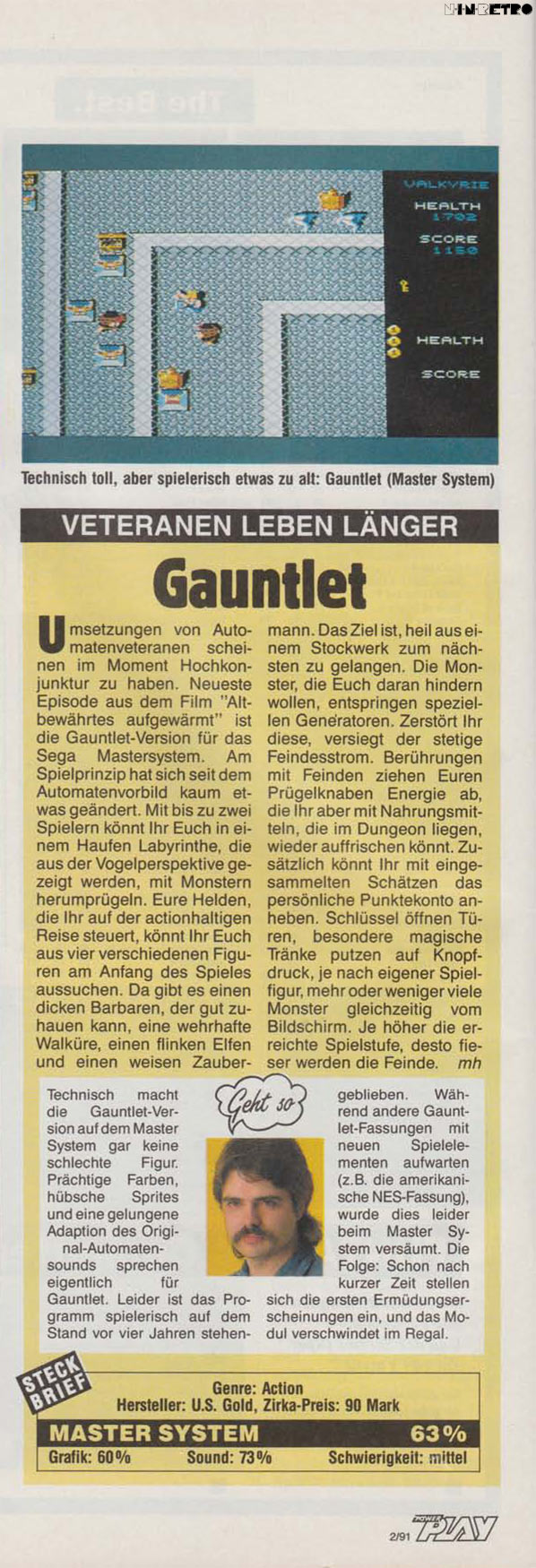 Was ich jetzt wieder höchst interessant finde, sind die unterschiedlichen Wertungen in der Power Play und in der Video Games. Letztere war damals noch ein Sonderheft der Power Play und in beiden Fällen wurde das Spiel von Michael Hengst getestet, dennoch in der VG 66% und in der 63% Spielspaß. Schon seltsam.