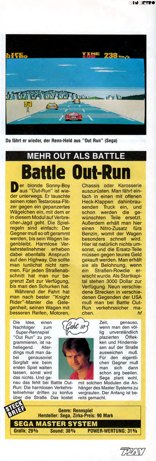 Jawohl. Mit Volldampf hinein in ein Rennen von Küste zu Küste, bei dem es um Nerven, Ausdauer und Geschicklichkeit geht: der sensationelle Nachfolger zu Out Run. Jagen und verhaften Sie acht der schnellsten und hinterhältigsten Syndikat-Bosse auf Rädern. Schnallen Sie sich an, greifen Sie das Lenkrad und lassen Sie die Fetzen fliegen auf dem Wege zu einem glorreichen Sieg.