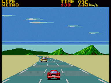 And accelerate into a coast-to-coast test of stamina, wits, and coordination in this heart-pounding sequel to Out Run. Chase down and capture eight of the fastest, nastiest Syndicate bosses on wheels. Strap yourself in and grab hold of the wheel. And get ready to smash, crash, and bash your way to glory.