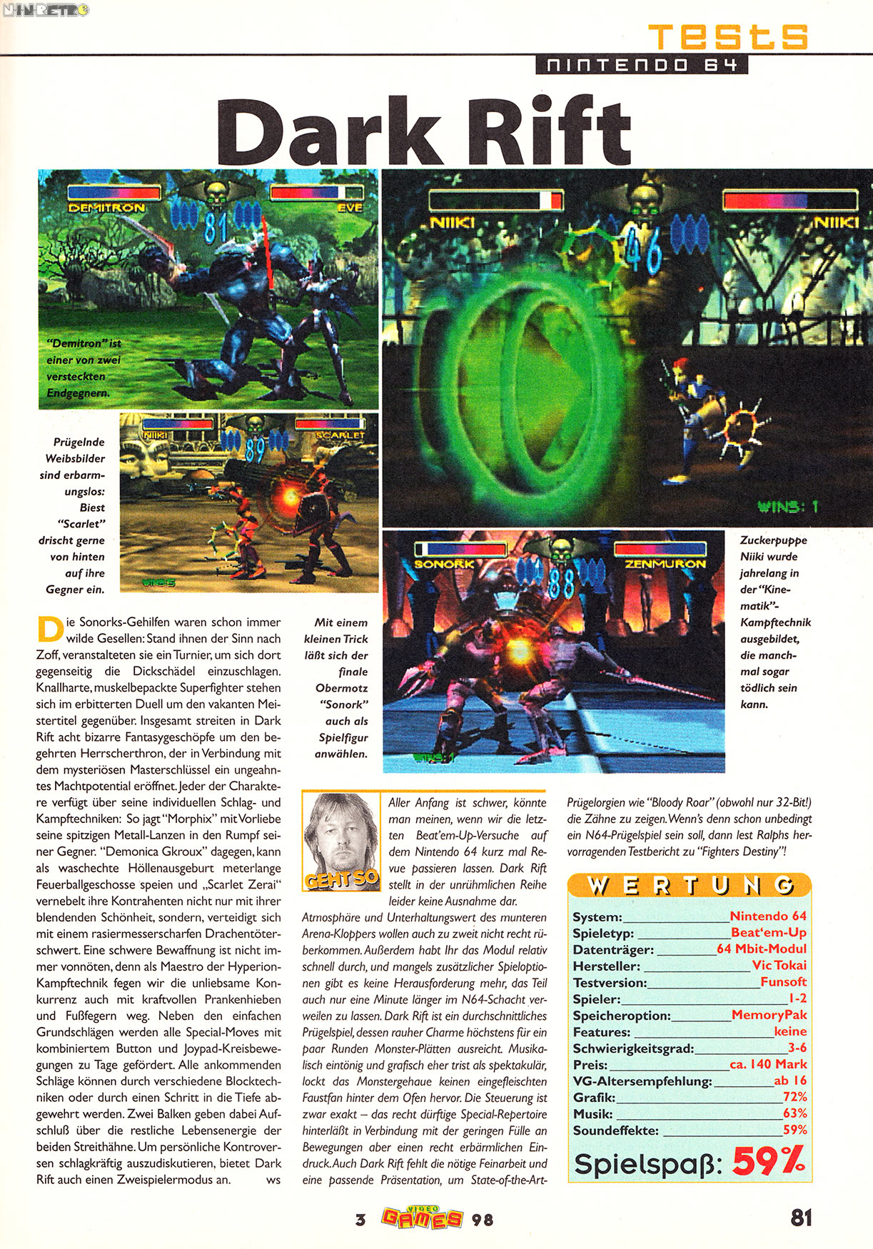 DarkRift gibt es aber nur für N64 und PC. Die MegaFun hat aber im allgemeinen keine PC-Spiele getestet, oder?
