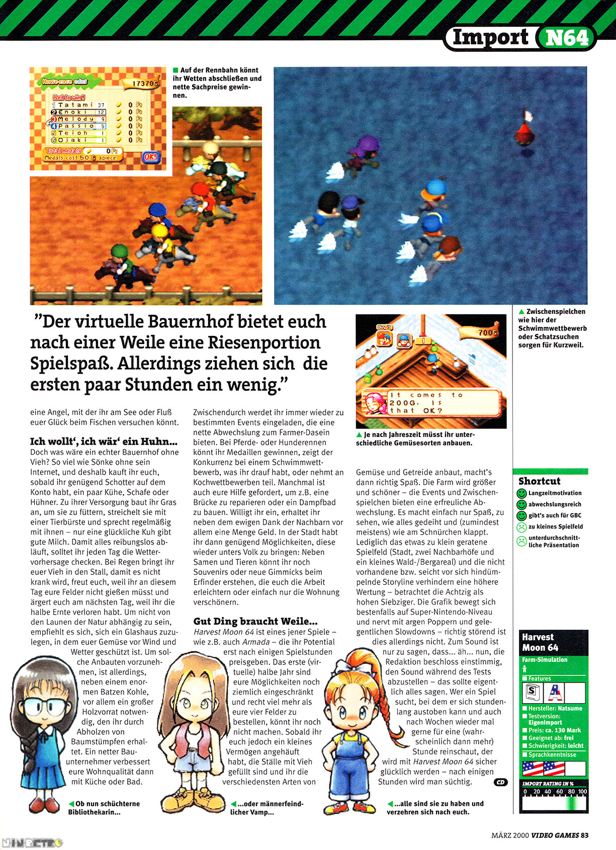 Das ist wie immer, irgendein Vollpfosten aus der Finanzabteilung des Publishers VERMUTET schlechte Absatzzahlen in Deutschland und redet das seinen Kollegen ein. So scheuen die sich vor einer Deutschen Lokalisierung, ohne mal genauer bei der Zocker-Gemeinde nachzuhaken. Die Absatzzahlen waren bei dem ersten Teil übrigens sehr gut in Japan und den USA. Und wie die jüngere Zukunft mit deinem angesprochenen Mineral Town gezeigt hat, mögen die Deutschen doch Harvest Moon. Hätten die sich doch damals mehr getraut. Das ist so fies...