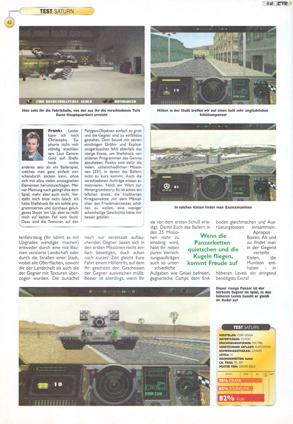 Nachdem ich auf dem Mega CD von Thunderhawk hellauf begeistert war und mich der 2. Teil auf dem Saturn sehr enttäuscht hat wurde ich hier dann mit Shellshock entschädigt. Das Spiel machte mir riesigen Spaß und es gibt nicht viele Saturn Spiele die ich so ausgiebig gespielt habe wie Shellshock. Ein großer Spaß.