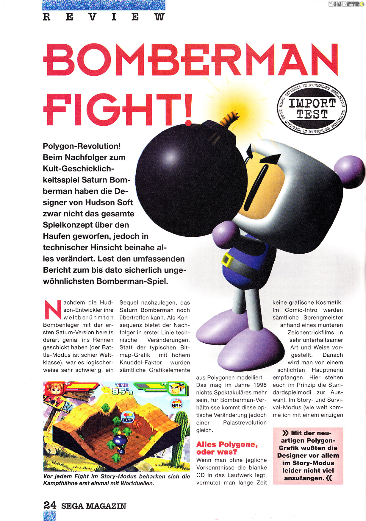 Den Sega Magazin Test habe ich damals verschlungen! Wollte das Spiel unbedingt haben, aber an Importspiele war damals nicht so einfach zu vernünftigen Preisen ranzukommen! Aber besser als mein geliebtes Saturn Bombern ist es ja wohl eh nicht.