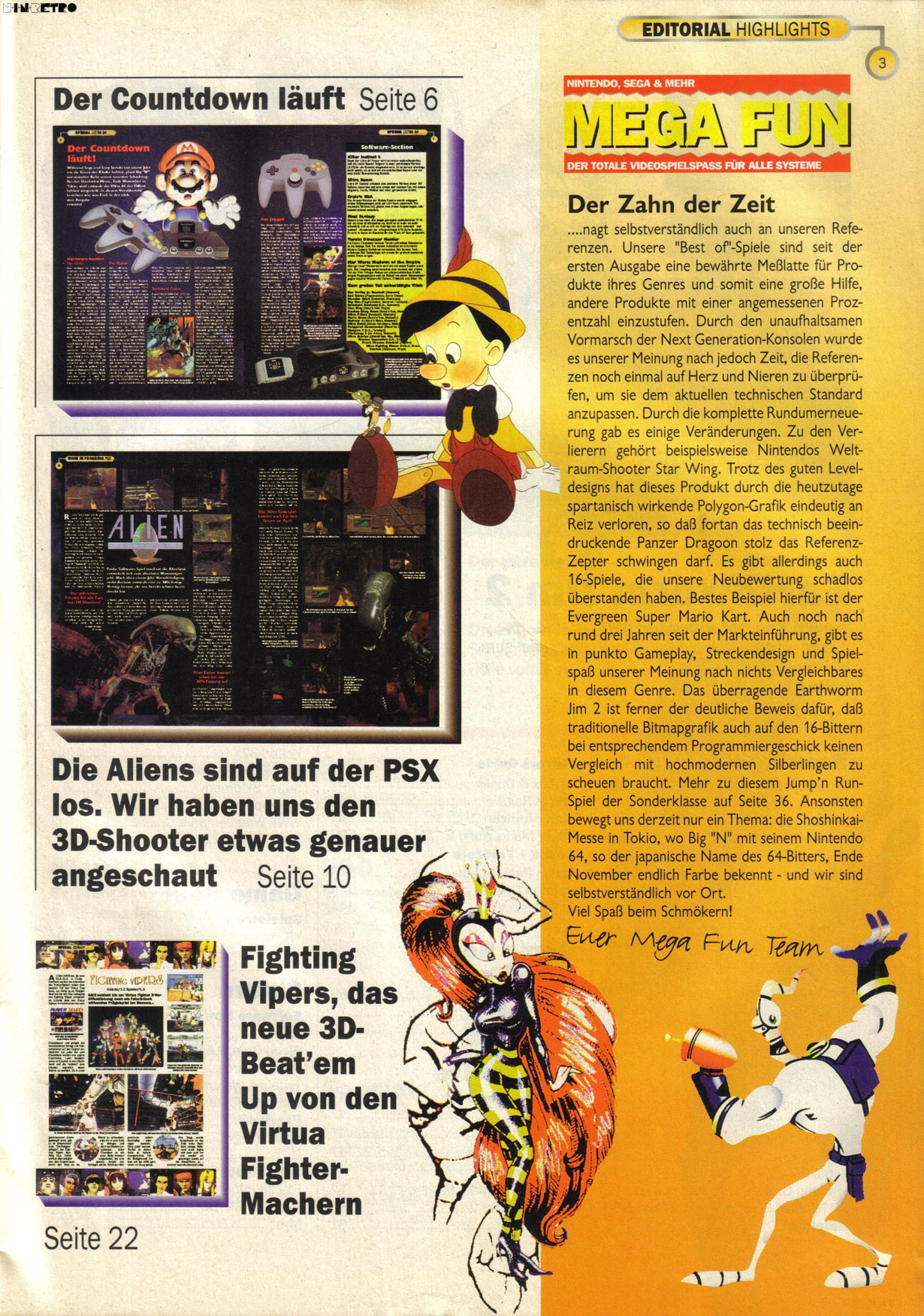 Es werden nur Beiträge zu Konsolenthemen gelistet die für N.i.n.Retro eine Relevanz haben. Reviews sowie Berichte zu Computerspiele, oder Konsolensysteme die nicht auf dieser Internetseite gelistet sind, werden nicht berücksichtigt sofern diese in der jeweiligen Ausgabe vorhanden sind. (Betrifft zum größten Teil nur Zeitschriften die sich neben Videospiele auch mit Computersystemen beschäftigt haben.)