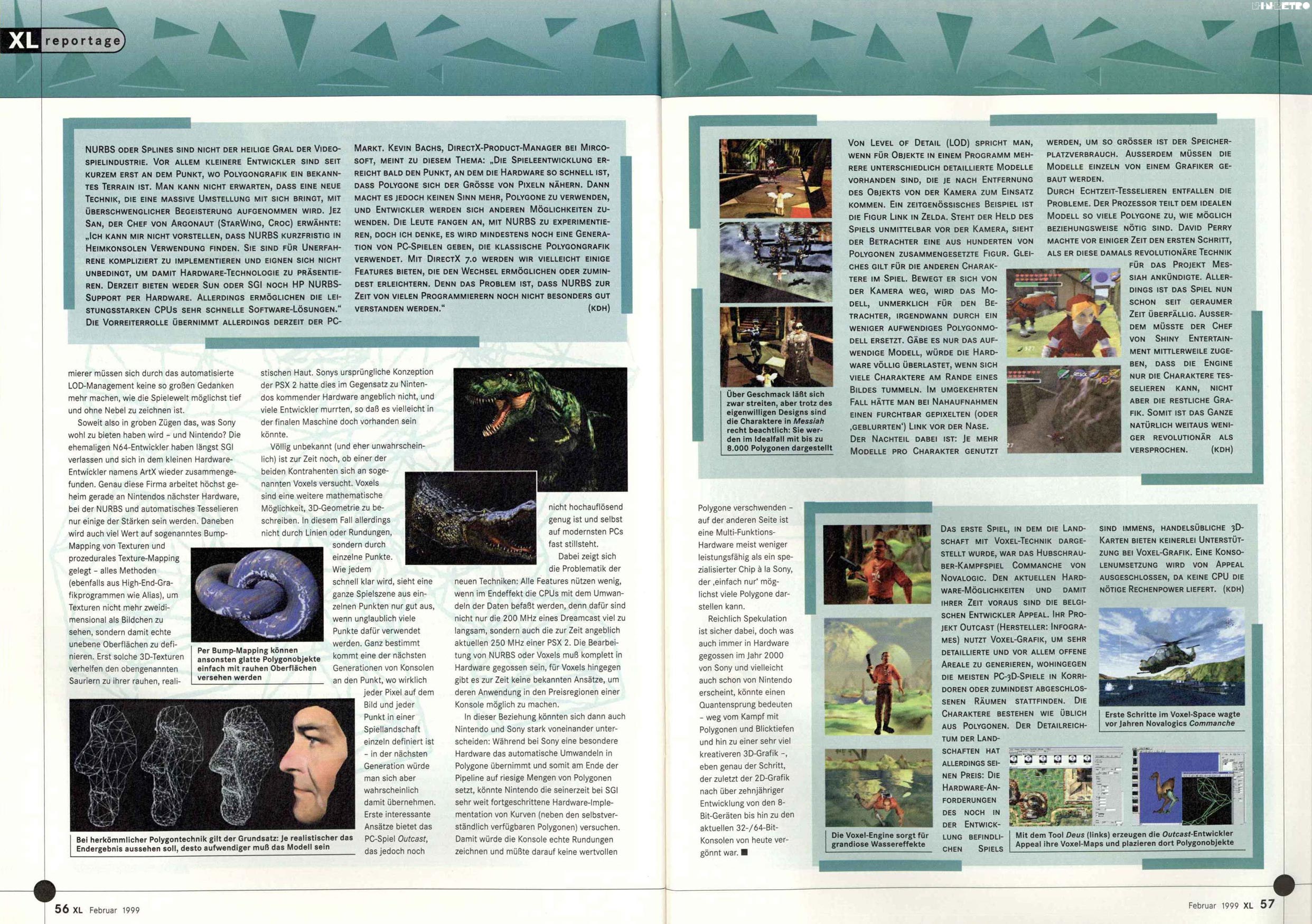 Aus den hier beschriebenen Rendermethoden ist rückblickend allerdings nicht viel geworden, zumindest im Spielebereich. Einzig die Tesselation hat sich durchsetzen können. Die Voxel-Experimente kann man hingegen an einer Hand abzählen, und Nurbs sind für eine Echtzeitanwendung wohl einfach zu kompliziert und rechenintensiv, gerade in Verbindung mit dem Lighting in heutigen Spielen.